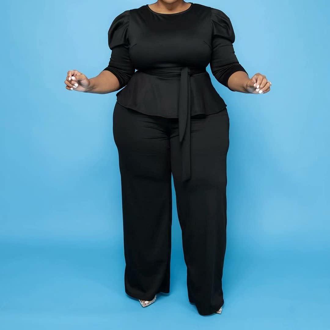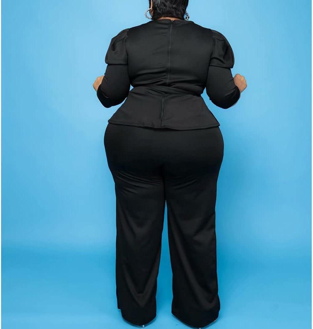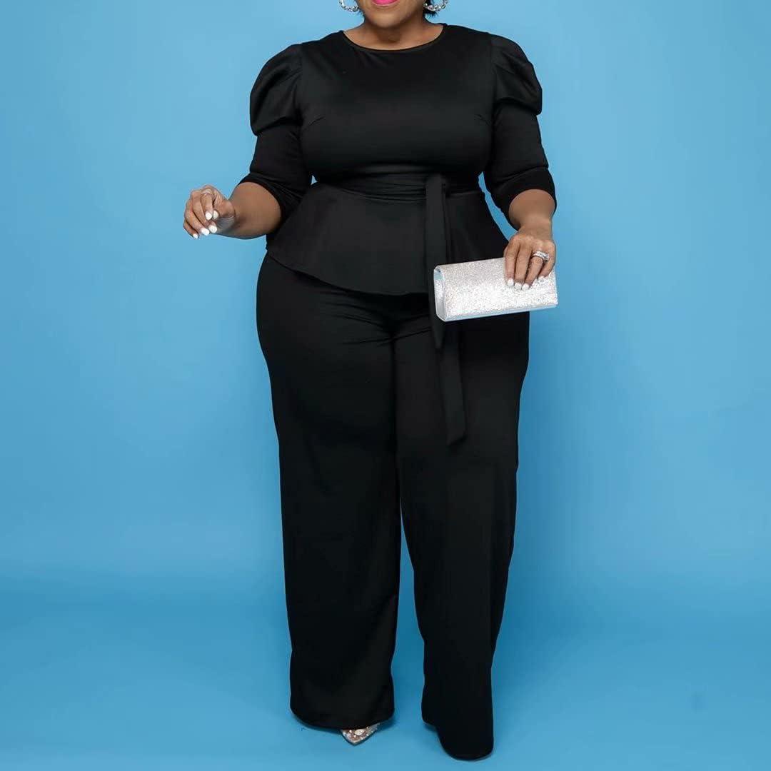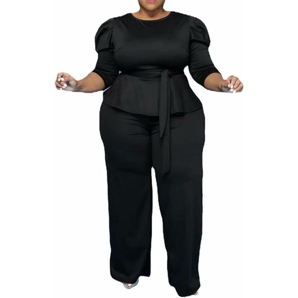 Score big savings on IyMoo Plus Size 2 Piece Jumpsuits for Women – Elegant 3/4 Sleeve Solid Peplum Tops Wide Pants Casual Suit Sets Black 2X during our back-to-school sale. Limited quantities available.