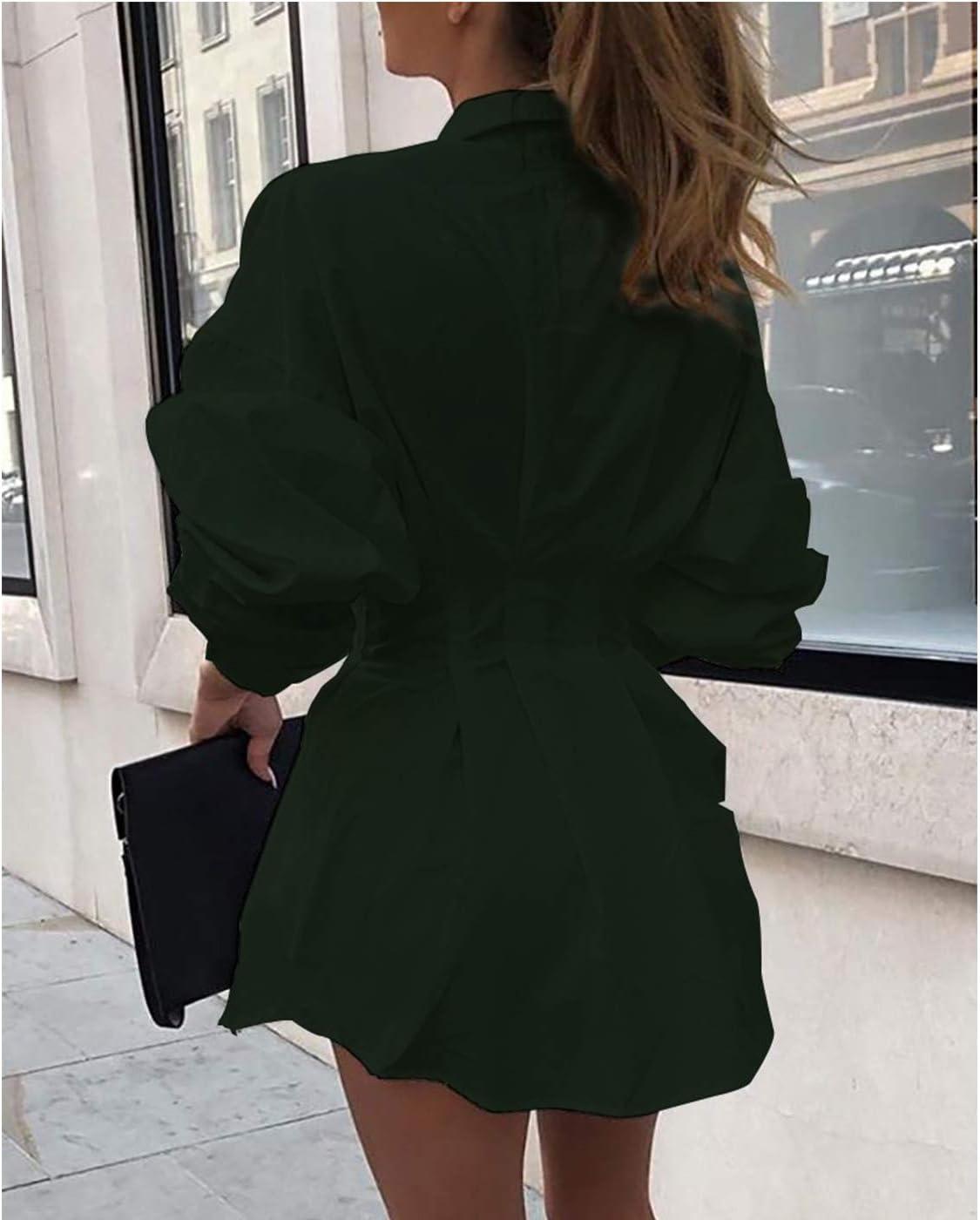 IyMoo Sexy Mini Shirt Dress for Women – Casual Button Down Blouse Long Sleeve V Neck Belted Shirts Blouse Top Short Dress(Letter White)