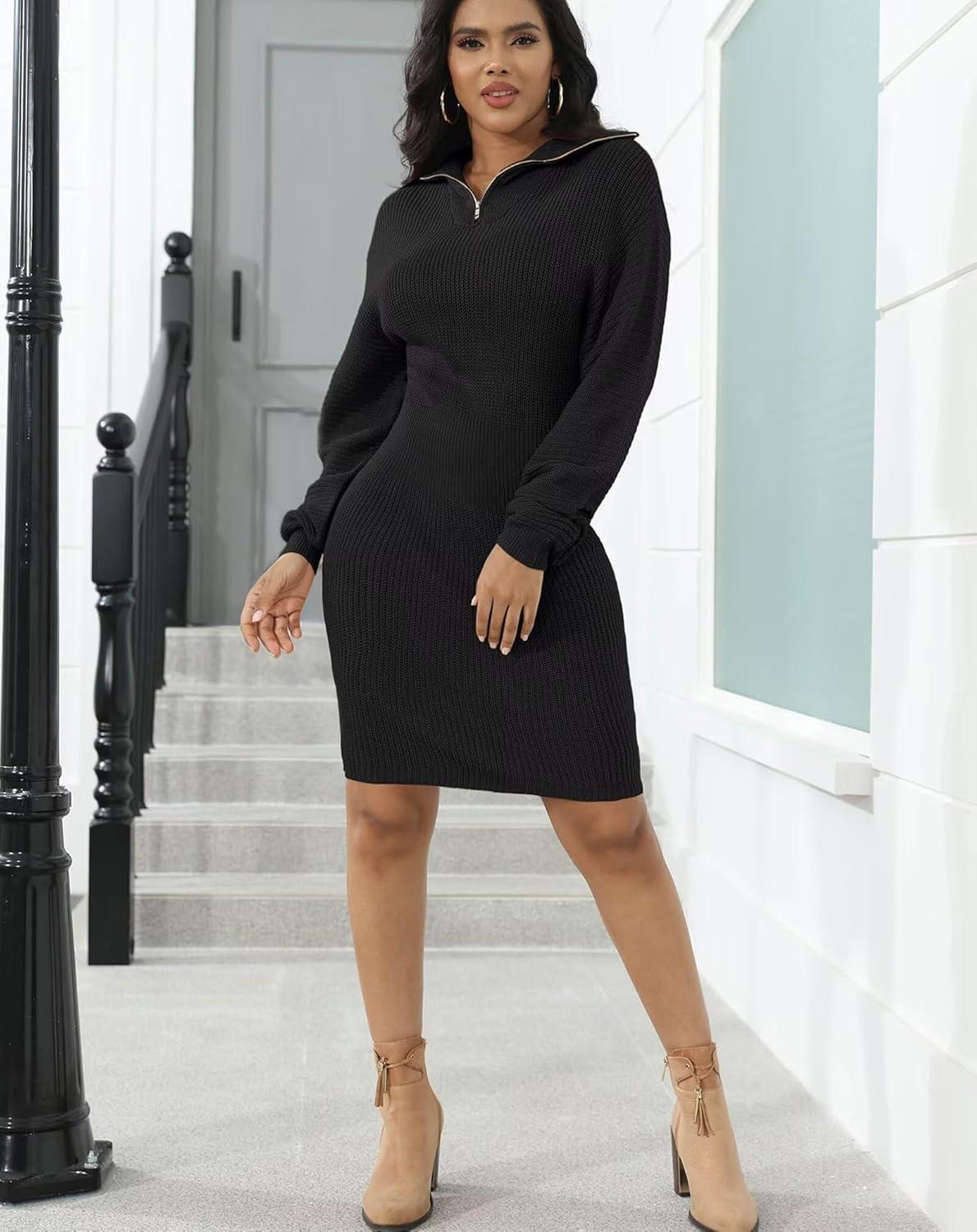 IyMoo Women's 2025 V Neck Ribbed Long Sleeve Bodycon Pullover Cute Mini Sweater Dress(Black)