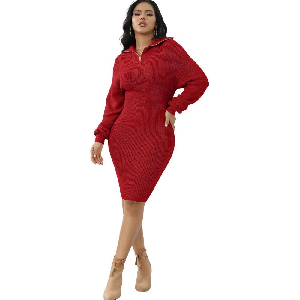 IyMoo Women's 2025 V Neck Ribbed Long Sleeve Bodycon Pullover Cute Mini Sweater Dress(Red)