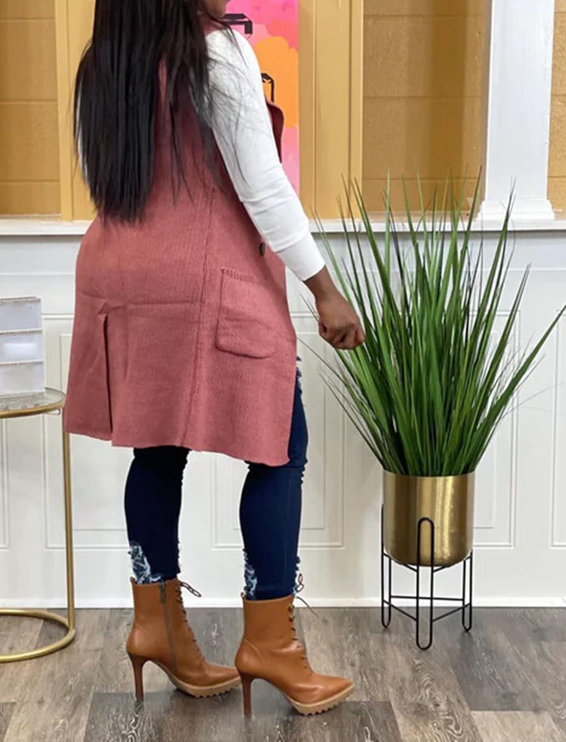 IyMoo Women's Casual Sleeveless Long Sweater Vest Open Front Knit Cardigan Waistcoat with Pockets(Pink)