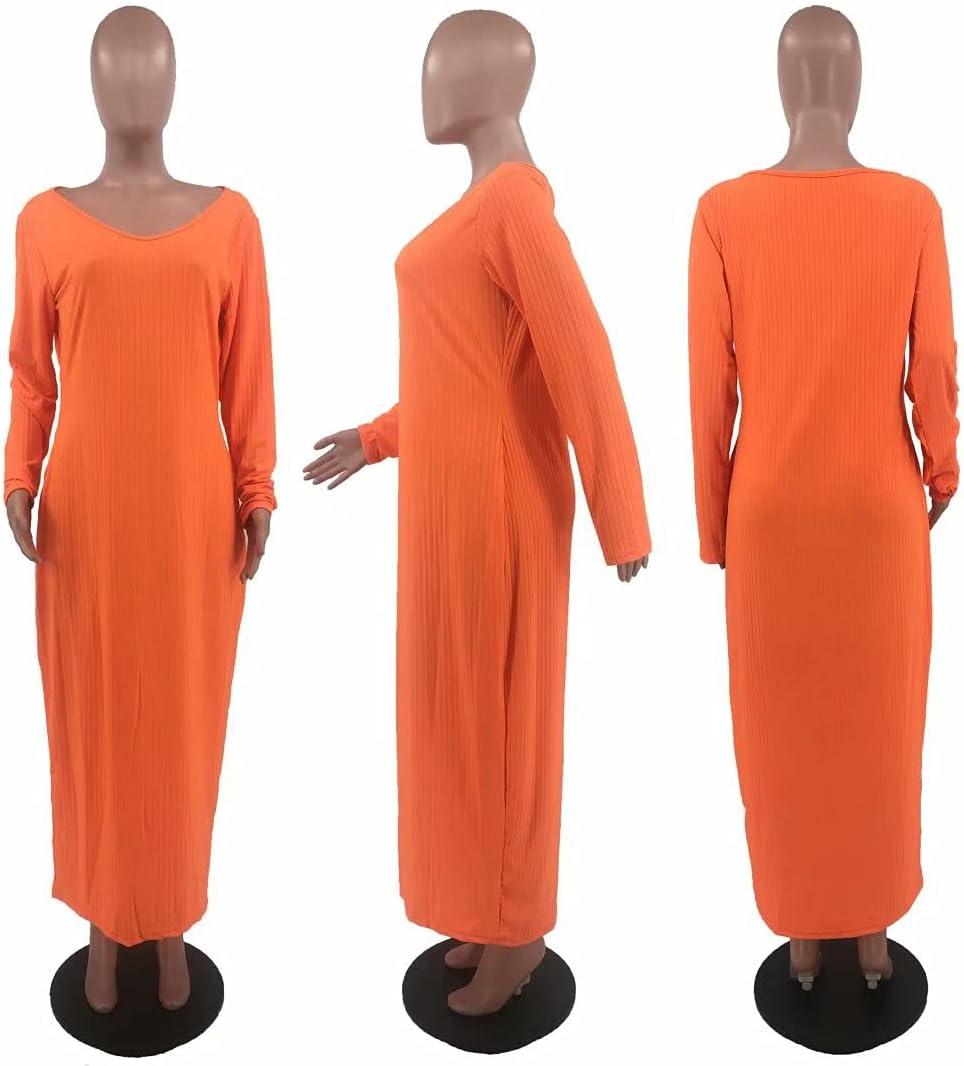 Women’s Plus Size Sexy Stretchable Long Sleeve Maxi Sweater Off Shoulder Knit Slim Fit Dress(588 Orange)
